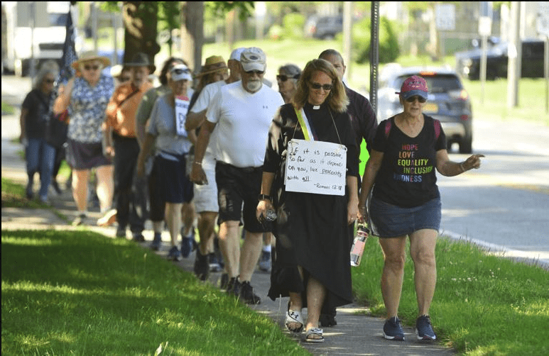 Excellent coverage by the Batavia Daily News of Pastor Leah’s inspiring walk. She’s an inspiration to the rest of us. What’s happening isn’t normal. We have to push back. Not all of us can walk 78 miles in three days, but we can all do something for peace and justice.